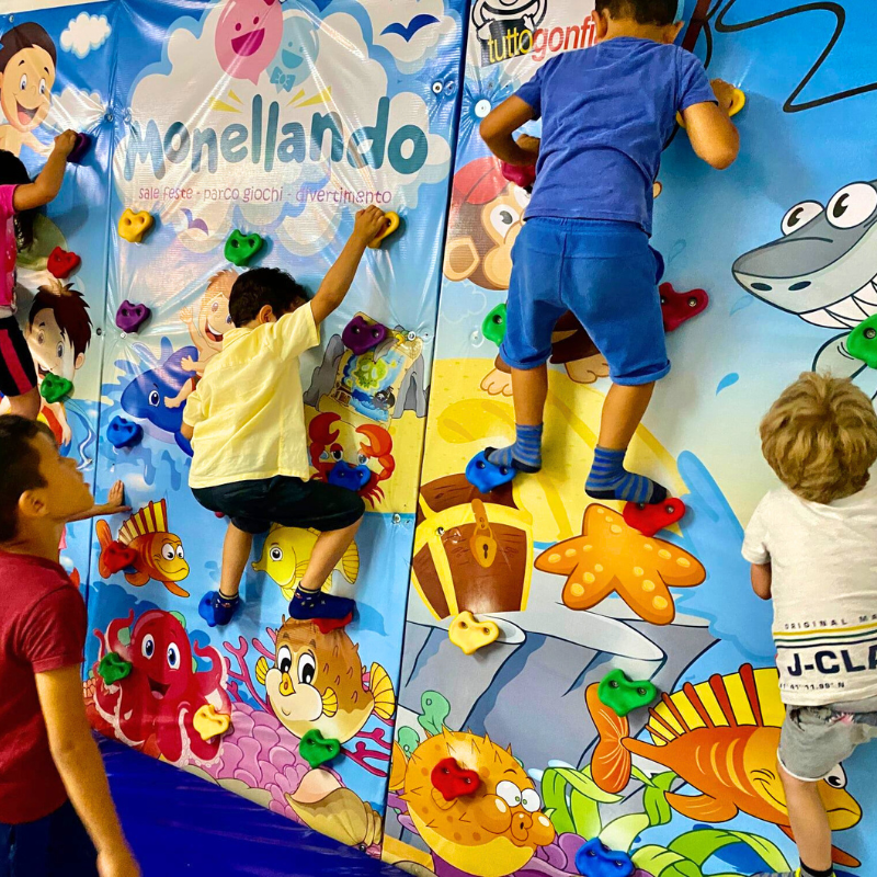 - Parete baby per arrampicata: un’esperienza emozionante a misura di bimbo, che stimola equilibrio e coordinazione in totale sicurezza.
