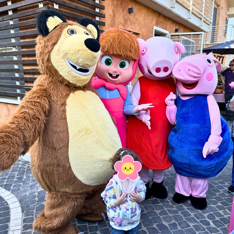 Ma non finisce qui! Per rendere la tua festa ancora più speciale, potrai anche noleggiare le nostre mascotte con operatore, scegliendo tra più di 40 personaggi amatissimi dai bambini e riconoscibili da tutti. L’animatore in costume interagirà con gli ospiti, poserà per le foto e contribuirà a creare un'esperienza davvero unica e coinvolgente.